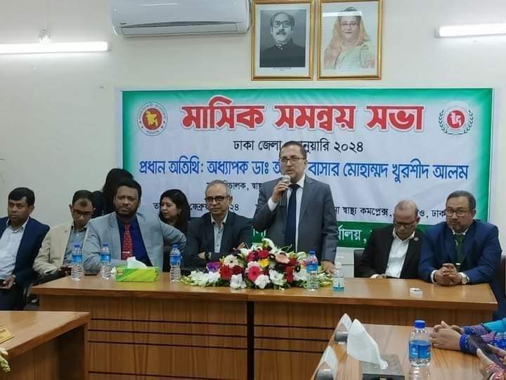 ০৩/০২/২০২৪ সালে স্বাস্থ্য বিভাগ ঢাকা জেলার মাসিক সমন্বয় সভা থানা স্বাস্থ্য কমপ্লেক্সে, তেজগাঁও,ঢাকায় আয়োজন করা হয়।